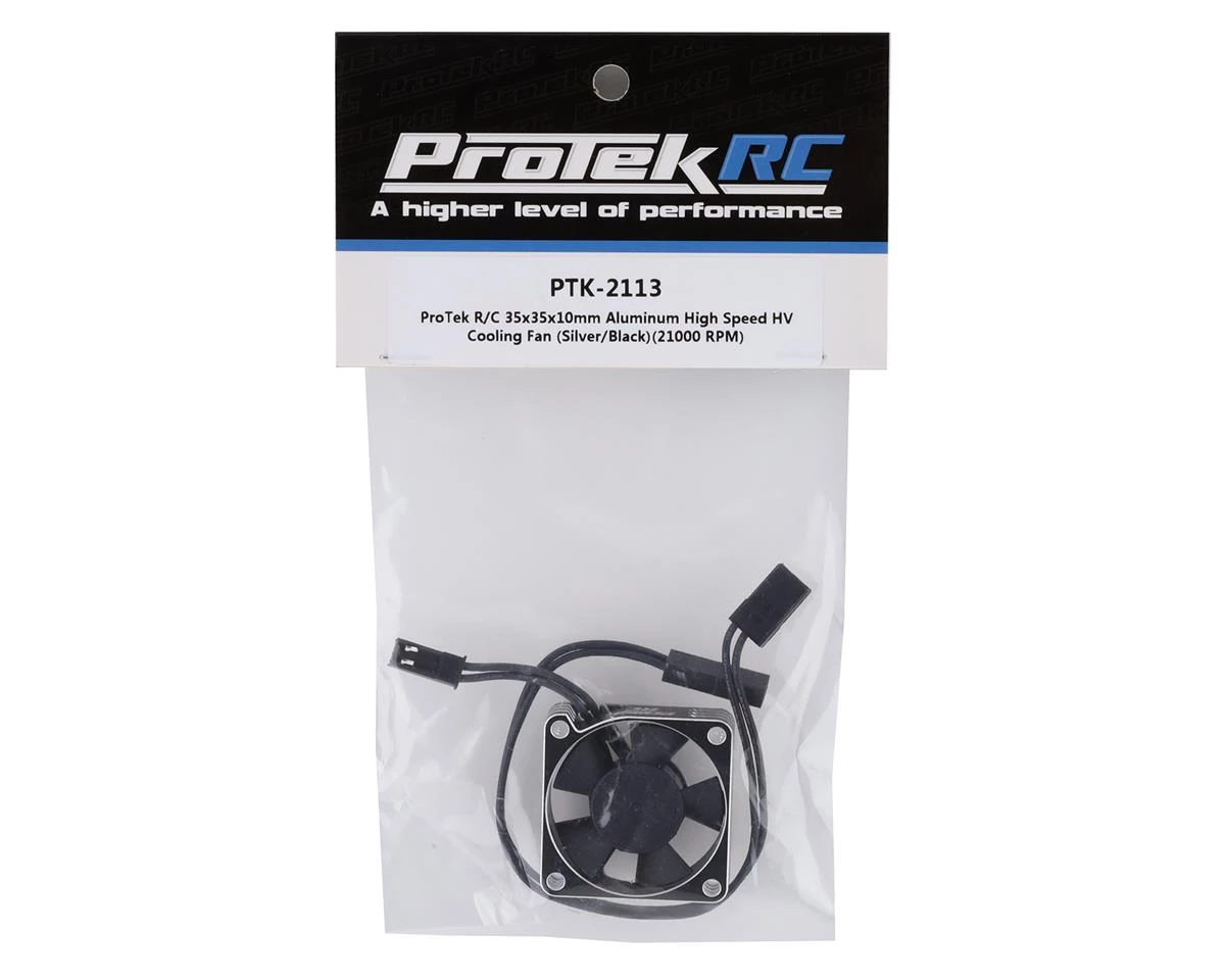 The ProTek RC 35x35x10mm Aluminum High Speed HV Cooling Fan is a great option to keep your ESC and motor temps in check. The fan is a true 2S HV component that has been built to last with dual ball bearings and machined aluminum case. The case allows cooler operation of the fan motor, while also adding strength to the assembly, helping to protect the fan blades in the event of a crash.