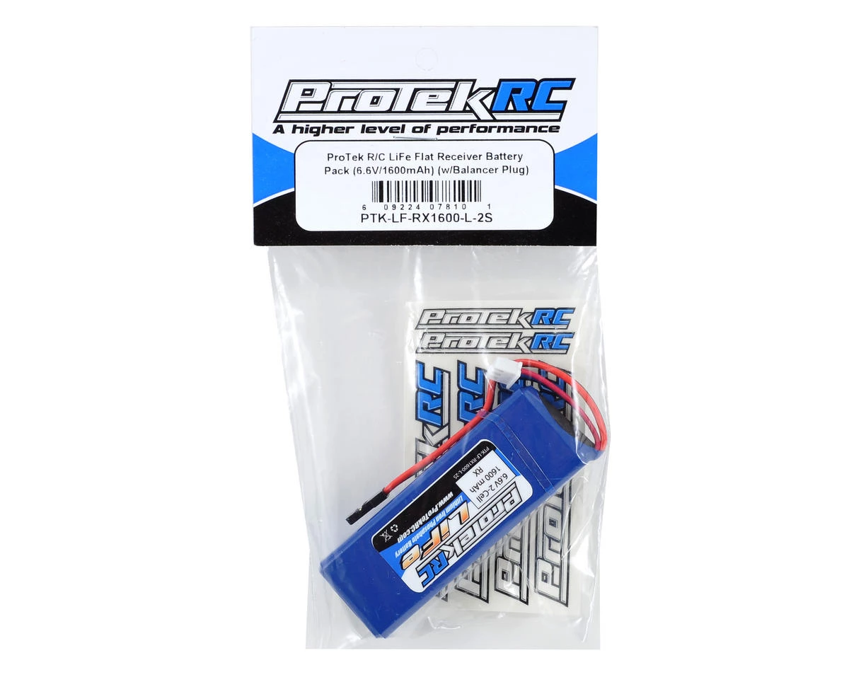 This is a ProTek R/C 1600mAh LiFe Flat Receiver Battery Pack. Lithium battery technology is evolving. With cell dimensions that fit anywhere a standard Li-Poly battery will and rapidly increasing capacity, LiFe chemistry will soon set the standard that all others are judged by. With the ability to deliver 1000+ usable cycles, and a life span up to 4 times longer than Li-Poly batteries (when cycled under the same discharge conditions), these batteries offer the user an excellent balance of performance and value. LiFe batteries are more durable than Li-Poly and are able to handle a higher level of abuse when compared to Li-Poly without the risk of pre-mature failure. Unlike Li-Poly, LiFe cells can be stored in a fully charged state with little to no loss in stored power, and can be discharged deeper with less risk of damage to the cells. Most importantly, LiFe batteries are SAFE! There is no risk of combustion! LiFe cells will not catch fire or explode when over charged, or after a deep discharge.