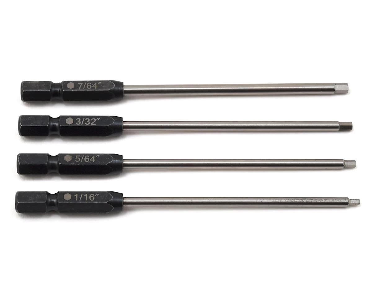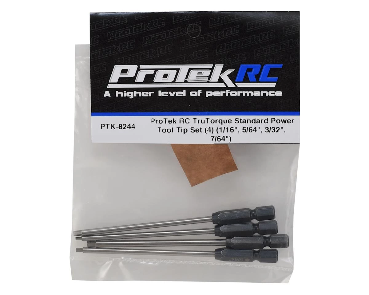 Anyone who has used a cordless drill to wrench on their rig knows that when used properly, power tools can provide an incredible advantage. They not only allow you to replace damaged parts faster, but also help to prevent hand fatigue. ProTek R/C “TruTorque” Power Tool Tips are machined from high quality HSS steel for durability and long life. The precision cut tips provide an exceptional fit with the fastener. The 1/4″ drive hex ends are designed to fit tools that accept a 1/4″ drive hex socket.